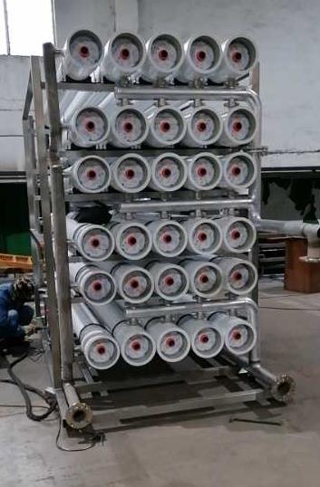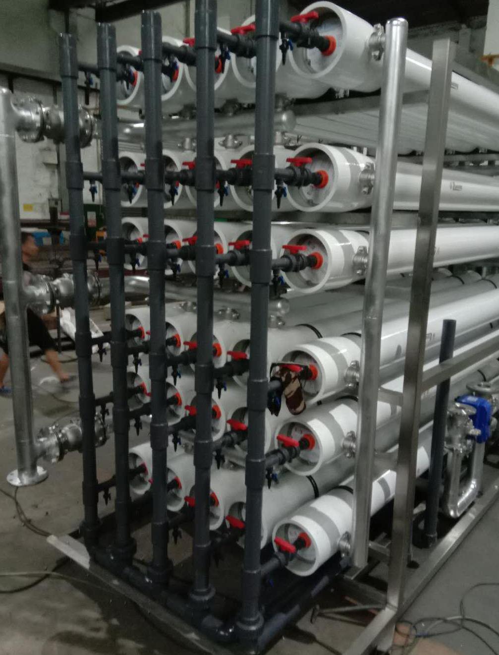 反滲透又稱逆滲透,是一種以壓力差為推動(dòng)力,從溶液中分離出溶劑的膜分離操作。對(duì)膜一側(cè)的料液施加壓力,當(dāng)壓力超過它的滲透壓時(shí),溶劑會(huì)逆著自然滲透的方向作反向滲透。從而在膜的低壓側(cè)得到透過的溶劑,即滲透液;高壓側(cè)得到濃縮的溶液,即濃縮液。若用反滲透處理海水,在膜的低壓側(cè)得到淡水,在高壓側(cè)得到鹵水。